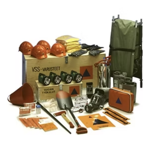 Įranga pristatoma supakuota į vieną dėžę, kuri taip pat tarnauja kaip apsauginių medžiagų laikymo dėžė. Apsauginių medžiagų turinys ir kiekis skiriasi priklausomai nuo žmonių skaičiaus objekte arba žmonių skaičiaus slėptuvėje.